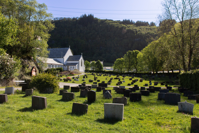Kyrkjegarden har vore i bruk sidan det først stod kyrkje på Fjell, og var den einaste kyrkjegarden i kommunen fram til 1849. Sidan den tid har han vorte utvida fleire gonger.