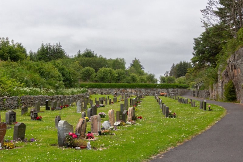 Gravplassen ligg ved Blomvåg kyrkje, og har eigen inngang nordvest for kyrkjebygget. Han er omgjeven av ein tørrmur bygd av flate natursteinar, som gjev området eit særprega og verna uttrykk.